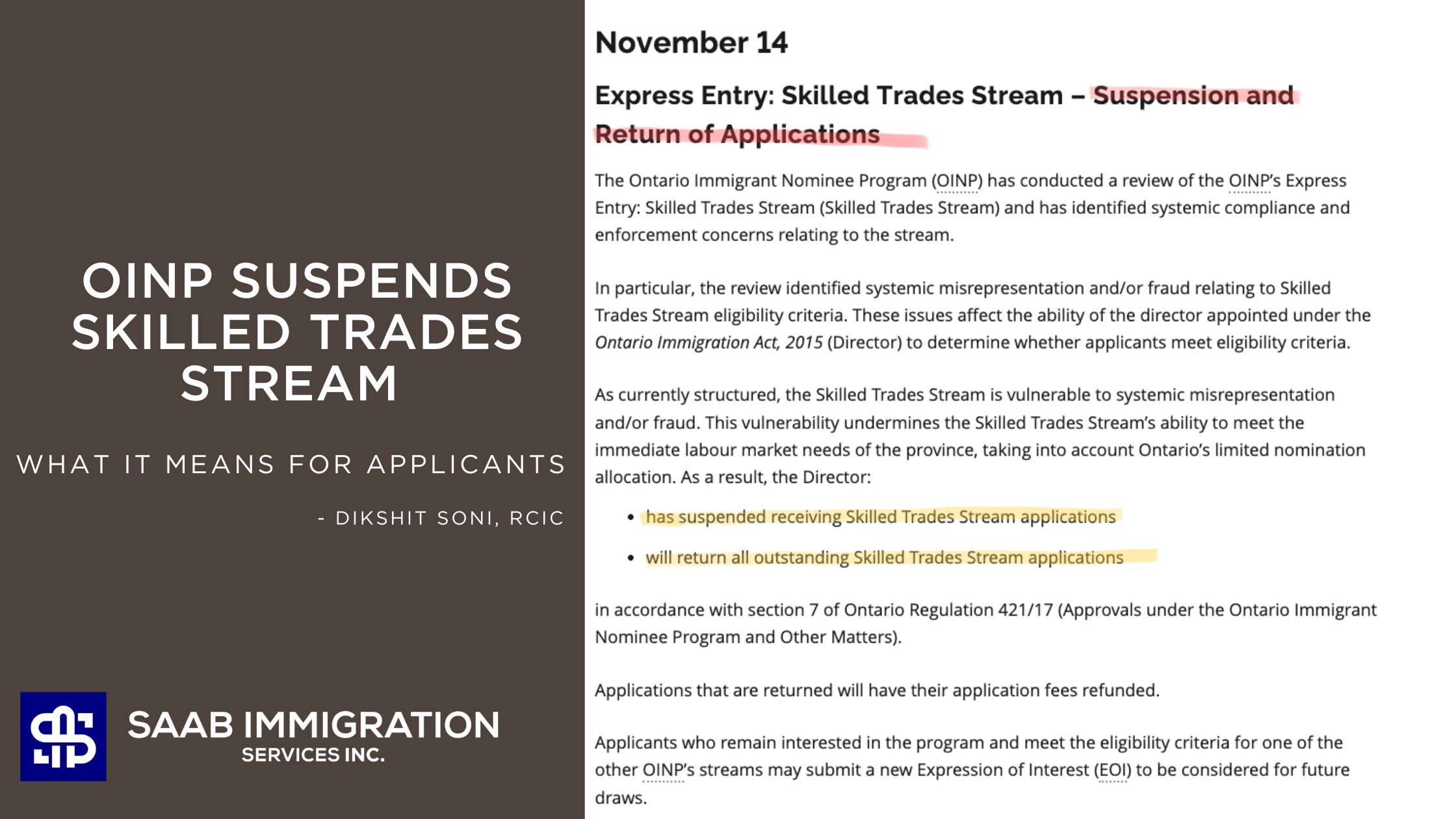 At SAAB Immigration Services Inc., our CICC-accredited team offers expert guidance and personalized solutions for your unique immigration journey. We provide a comprehensive range of services, from business immigration to permanent residency, ensuring accuracy and efficiency. Our motto, ‘Do It Once, Do It Right,’ reflects our commitment to excellence in every case.