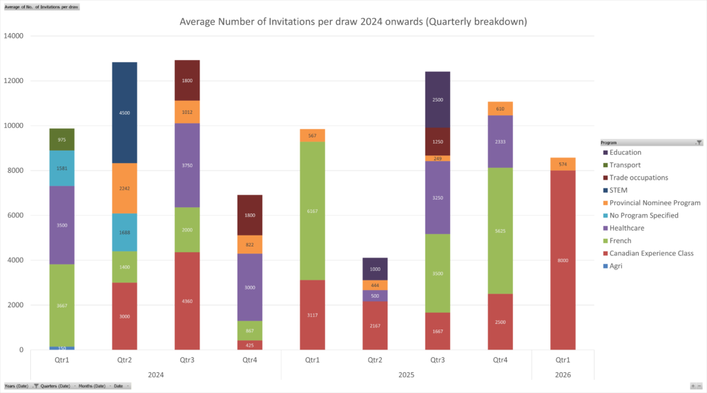 A closer look: Quarterly average ITAs per draw since 2024, spotlighting trends post category-based draw shift.